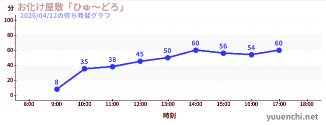 2026/04/12の待ち時間グラフ (お化け屋敷「ひゅ~どろ」)