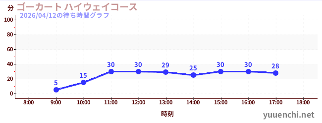 2026/04/12の待ち時間グラフ (ゴーカート ハイウェイコース)