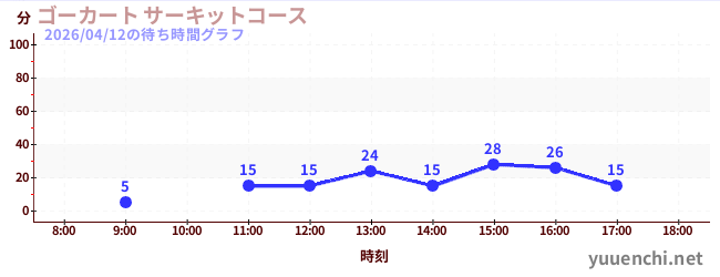 2026/04/12の待ち時間グラフ (ゴーカート サーキットコース)