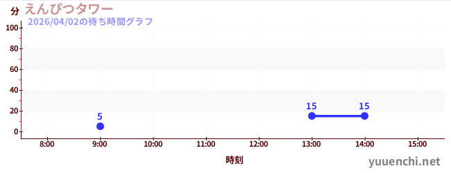 2026/04/02の待ち時間グラフ (えんぴつタワー)