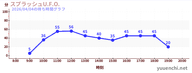 2026/04/04の待ち時間グラフ (スプラッシュU.F.O.)
