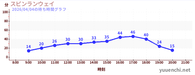 2026/04/04の待ち時間グラフ (スピンランウェイ)