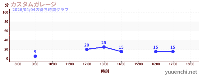 2026/04/04の待ち時間グラフ (カスタムガレージ)