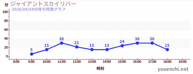 2026/04/04の待ち時間グラフ (ジャイアントスカイリバー)
