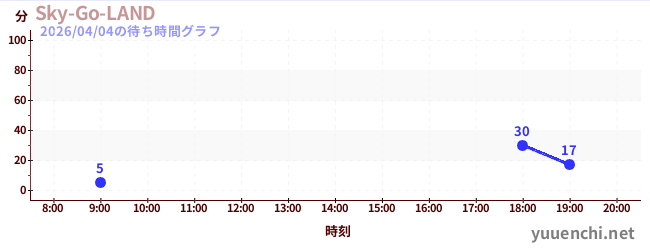 2026/04/04の待ち時間グラフ (Sky-Go-LAND)