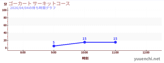 2026/04/04の待ち時間グラフ (ゴーカート ファミリーコース)