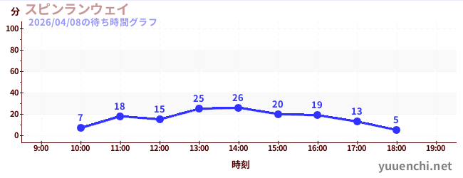 2026/04/08の待ち時間グラフ (スピンランウェイ)