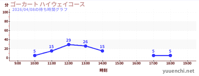 2026/04/08の待ち時間グラフ (ゴーカート ハイウェイコース)