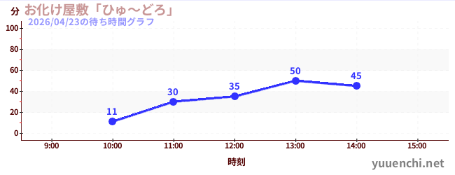 今日これまでの混雑グラフ (お化け屋敷「ひゅ~どろ」)