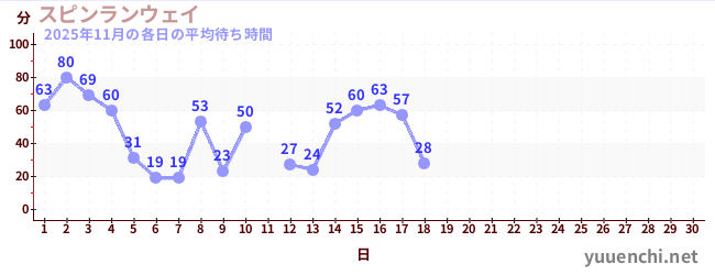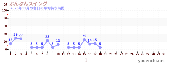 2025/11เวลารอเฉลี่ยต่อวันของ (ぶんぶんスイング)
