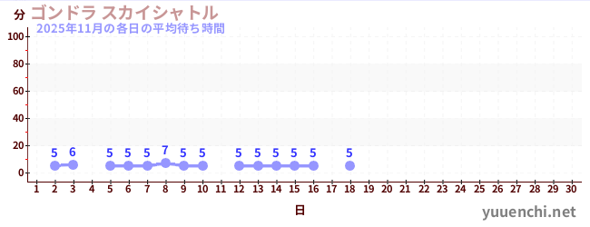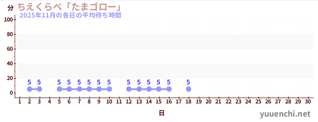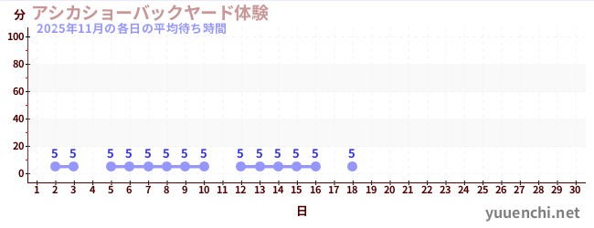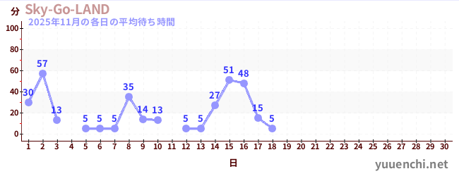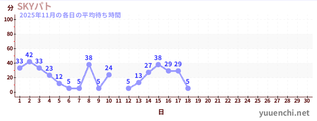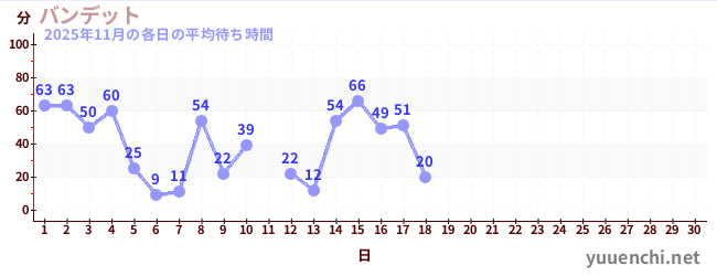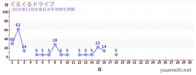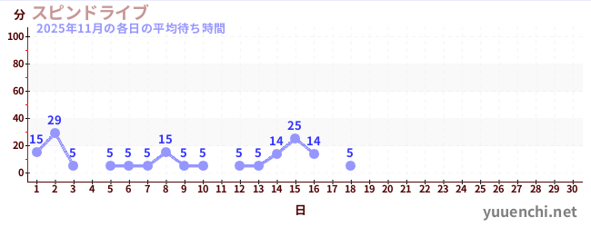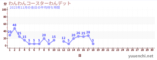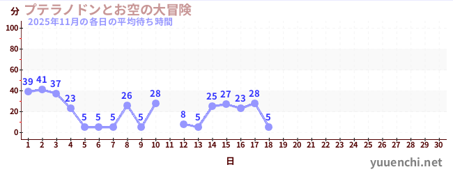 2025/11เวลารอเฉลี่ยต่อวันของ (プテラノドンとお空の大冒険)