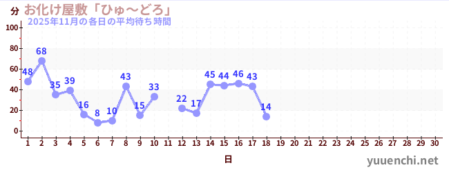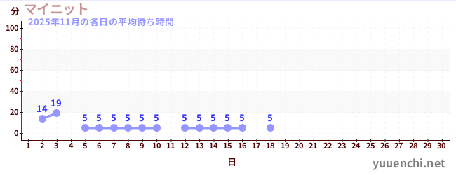 2025/11เวลารอเฉลี่ยต่อวันของ (ミルキーウェイ(シングルシート))