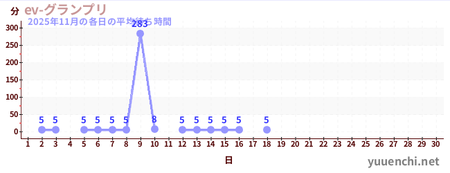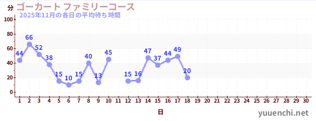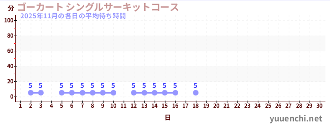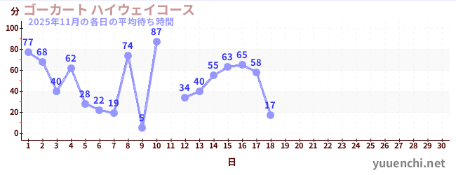 2025/11เวลารอเฉลี่ยต่อวันของ (ゴーカート ハイウェイコース)
