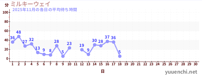 2025/11เวลารอเฉลี่ยต่อวันของ (Milky Way)