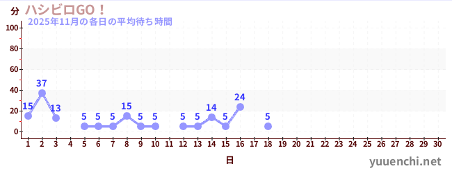 2025/11เวลารอเฉลี่ยต่อวันของ (Hashibiro GO!)