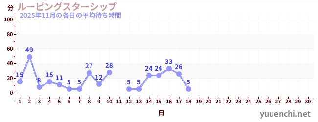 2025/11เวลารอเฉลี่ยต่อวันของ (Looping Starship)