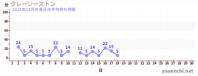 2025/11เวลารอเฉลี่ยต่อวันของ (Crazy Hyuuuu/Crazy Stooon)