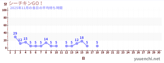 2025/11เวลารอเฉลี่ยต่อวันของ (ซีชิกเก้น โก!)
