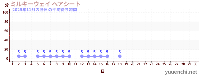 2025/11เวลารอเฉลี่ยต่อวันของ (ミルキーウェイ(ペアシート))