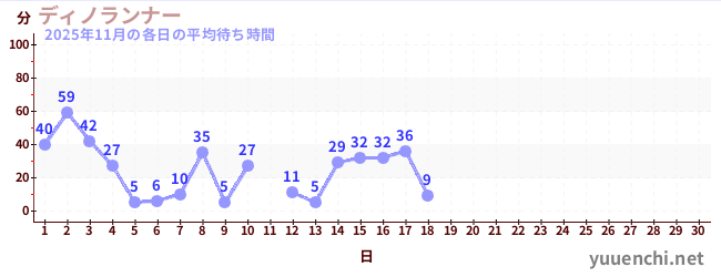 2025/11เวลารอเฉลี่ยต่อวันของ (ディノランナー)